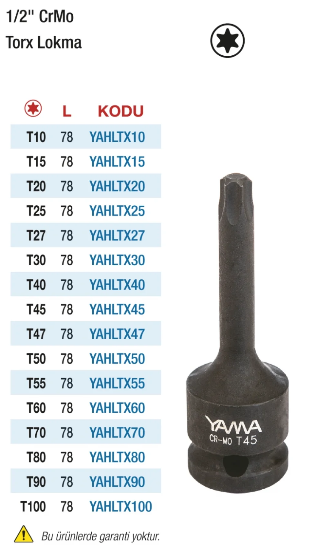 Hepsicinde 1/2'' CrMo Torx Lokma, yüksek kaliteli krom molibden çelikten üretilmiş, dayanıklı ve işlevsel bir tamir aletidir. Profesyonel kullanım için idealdir ve çeşitli tornavida uçları ile birlikte gelir. Her türlü işinizde size yardımcı olacak bu torx lokmayı hemen satın alın.