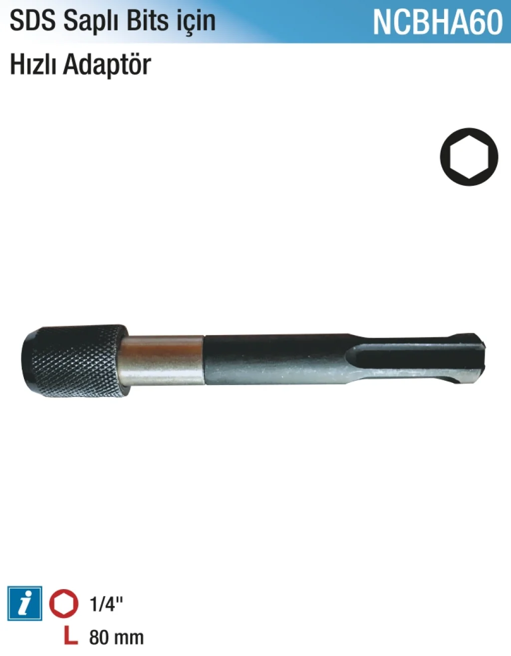 80mm SDS 1/4" Bits için Hızlı Adaptör, SDS uyumlu matkap ve darbeli cihazlarda 1/4" bitslerin hızlı ve pratik şekilde değiştirilmesini sağlar. 80 mm uzunluğuyla derin delme ve zor erişilen noktalarda kullanım için idealdir. Dayanıklı malzemeden üretilmiş olup uzun ömürlüdür. Profesyonel ve amatör kullanıcıların iş verimliliğini artıran bu adaptör, çeşitli montaj ve sökme işlerinde zaman kazandırır.