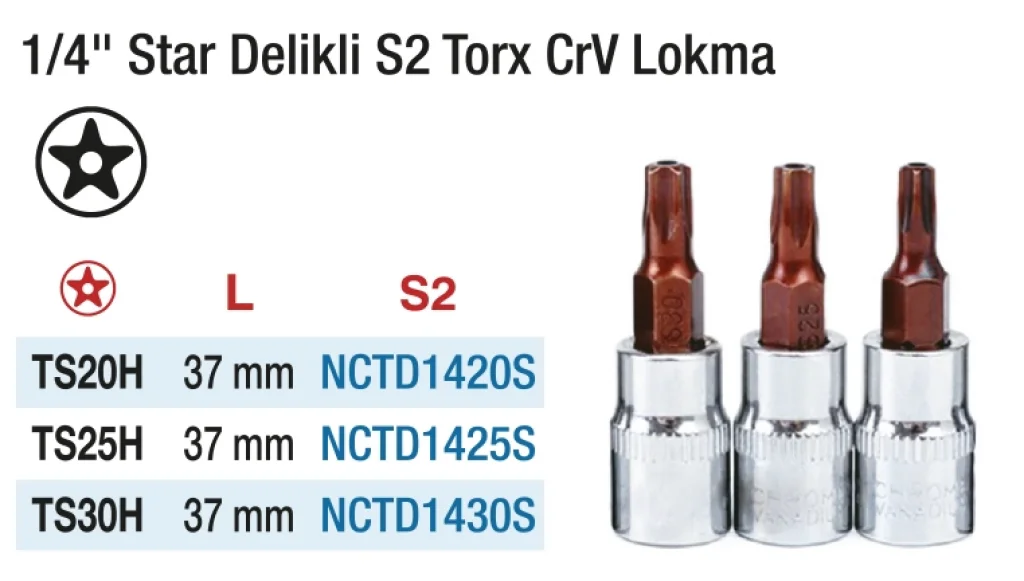 Hepsicinde 1/4'' Crv Star Delikli S2 Torx Lokma, dayanıklı yapısı ve yüksek kalitesiyle ön plana çıkıyor. Bu işlevsel torx lokma, her türlü vida işleminde size kolaylık sağlar. Uzun ömürlü kullanım için ideal bir seçimdir.