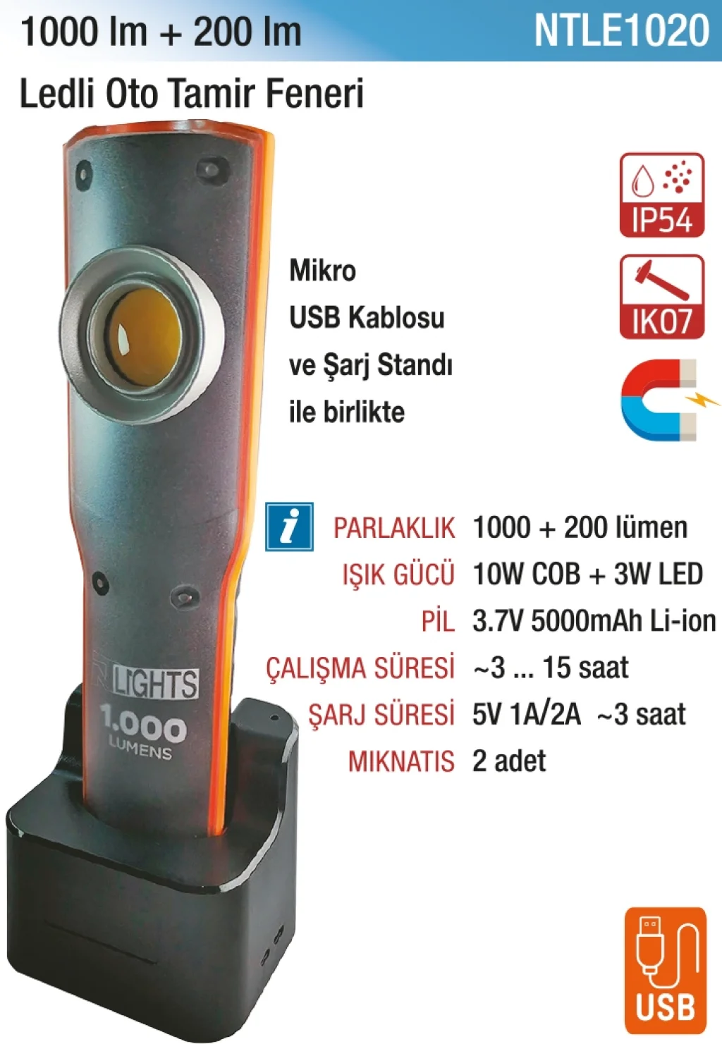 1.000+200 Lümen Ledli El Feneri, yüksek performanslı LED teknolojisi ile maksimum 1000 lümen parlaklık sağlar. İkinci modda 200 lümen parlaklık sunarak enerji tasarrufu ve uzun kullanım imkanı verir. Dayanıklı alüminyum gövde, su ve darbeye dayanıklıdır. Ergonomik yapısı, tek elle rahat kullanım sağlar. Kamp, acil durum ve profesyonel kullanım için idealdir. Güçlü ışık ve kompakt tasarım, her ortamda güvenilir aydınlatma sunar.