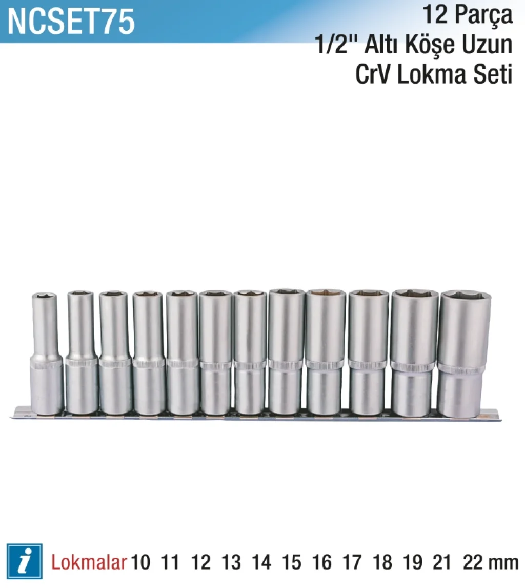Hepsicinde bulabileceğiniz 12 Parça 1/2" Altı Köşe CR-V Uzun Lokma Seti, yüksek kaliteli CR-V malzemeden üretilmiştir. Dayanıklı ve işlevsel tasarımıyla profesyonel kullanım için ideal bir seçenektir. Uzun lokma seti sayesinde zorlu işlerde bile kolaylıkla kullanabilirsiniz.