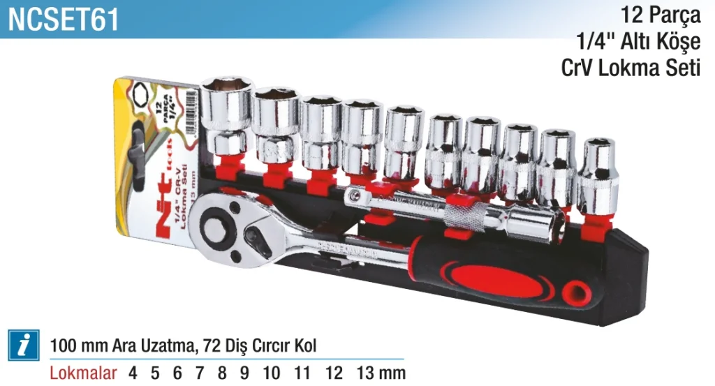 12 Parça 1/4" Altı Köşe CR-V Lokma Seti, özellikle hassas bağlantı noktalarında çalışmak için geliştirilmiş, kompakt ve pratik bir settir. Yüksek kaliteli Krom Vanadyum çelikten (CR-V) üretilen lokmalar, dayanıklılığı ve uzun ömürlü kullanımı garanti eder. 1/4” tahrik uyumu sayesinde tornavidalar, mini lokma kolları ve benzeri el aletleriyle rahatça uyum sağlar. Altı köşe (6pt) yapısı ile cıvatalara tam oturarak sıyrılma riskini minimize eder. Bu set; elektronik tamiratlar, ince mekanik montajlar ve hafif el aleti işlemleri için mükemmeldir. Taşıma çantası ile birlikte gelir.