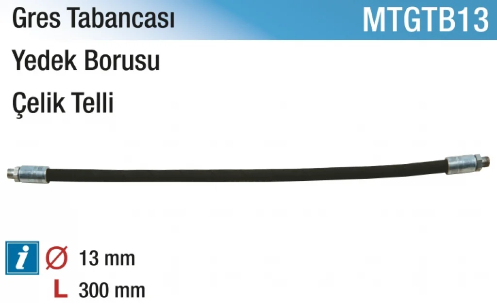 Gres tabancanız için hem dayanıklı hem de esnek bir yedek boru arıyorsanız, 13 x 300 mm Gres Tabancası Çelik Telli Kauçuk Yedek Borusu ihtiyaçlarınızı karşılayacaktır. Hemen sipariş verin ve yağlama işlerinizi kolaylaştırın!