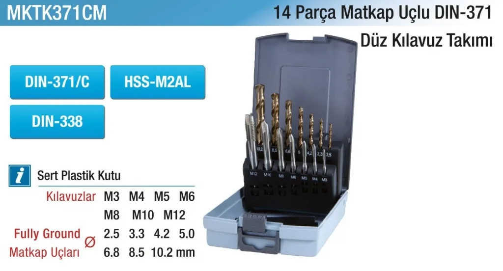 Hepsicinde 14 PARÇA MATKAP UÇLU DIN371 DÜZ KILAVUZ TAKIMI (1 Adet) ile işlerinizi kolayca halledebilirsiniz. Bu dayanıklı ve kaliteli takım, matkap uçlarınızı güvenle kullanmanızı sağlar. Profesyonel işlerinizde ihtiyacınız olan bu kılavuz takımı sayesinde her işiniz daha kolay ve hızlı olacak.