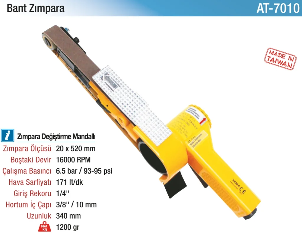 20 x 520 mm Havalı Bant Zımpara, geniş alanlarda etkili ve hızlı zımparalama sağlar. Bu bant zımpara, güçlü pnömatik motoru sayesinde metal, ahşap, plastik ve diğer yüzeylerde yüksek performans gösterir. 20 x 520 mm boyutundaki bant, büyük yüzeylerin hızlı bir şekilde zımparalanmasına olanak tanır.