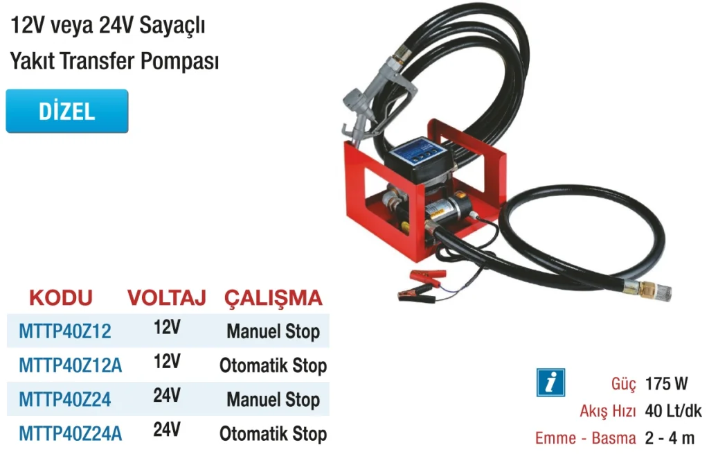 Piyasada en çok tercih edilen 24V sayaçlı yakıt transfer pompalarından biri, hepsicinde.com adresinde uygun fiyatlarla satışta!