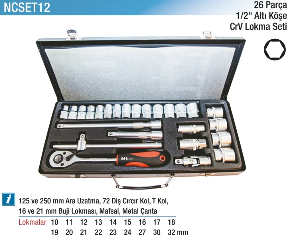 Hepsicinde 26 Parça 1/2" Altı Köşe CR-V Lokma Seti, tamir işlerinizde size yardımcı olacak işlevsel bir set. Kaliteli CR-V malzemeden üretilmiş olan bu lokma seti, dayanıklılığı ile ön plana çıkıyor. Profesyonel ve ev kullanımı için uygun olan bu set, geniş parça çeşitliliği ile her türlü ihtiyacınızı karşılayacak.