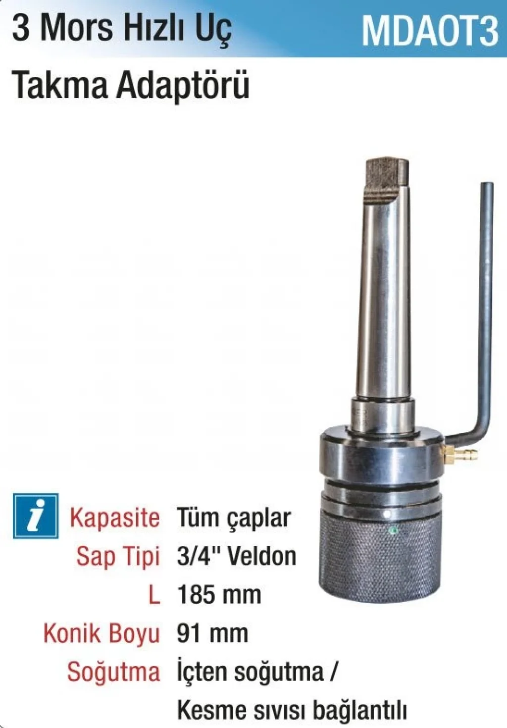 Hepsicinde 3 MORS HIZLI UÇ TAKMA ADAPTÖRÜ (1 Adet), işlerinizi hızlı ve pratik bir şekilde yapmanızı sağlar. Dayanıklı malzemeden üretilmiş olan adaptör, işlevselliği ile de dikkat çekiyor. Uç takma işlemlerinizde size kolaylık sağlayacak bu ürün, profesyonel kullanım için ideal bir seçenektir.