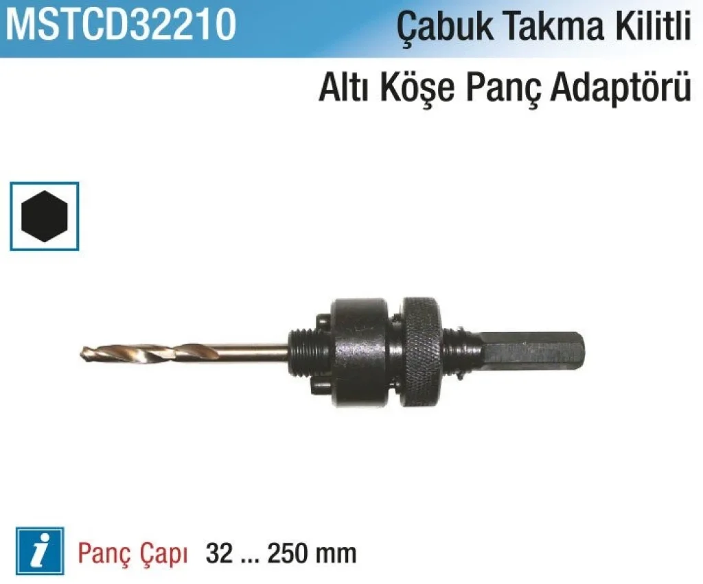 Hepsicinde 32-250 MM. 6PT Çabuk Takmalı Kilitleme Panç Adaptörü Seti (3 Adet), işlerinizi hızlı ve kolay bir şekilde yapmanızı sağlar. Bu set, dayanıklı malzemeden üretilmiş olup farklı boyutlardaki panç adaptörleri ile birlikte gelir. Profesyonel kullanım için idealdir.