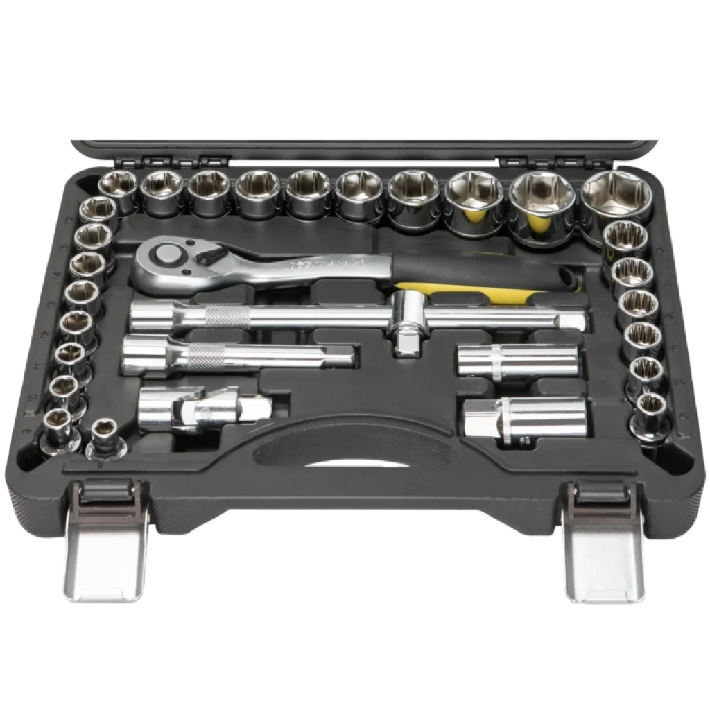 32 parça 1/2" altıgen ve 12 köşe CR-V lokma seti, güçlü alaşımı sayesinde dayanıklı ve uzun ömürlüdür. Çeşitli vida ve somun tiplerine uyum sağlayarak tam kapsamlı kullanım olanağı sunar.