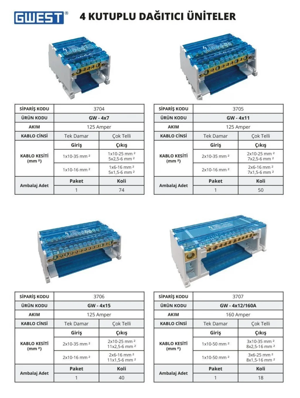 Her bir kutup izole şekilde yapılandırıldığından, faz ayrımında karışıklık yaşanmaz. Kompakt tasarımı ile pano içinde yer kazandırır ve düzenli bir kablolama ortamı sunar. 4 kutuplu yapısı sayesinde üç faz + nötr veya farklı devreleri ayrı ayrı taşımak için uygundur.