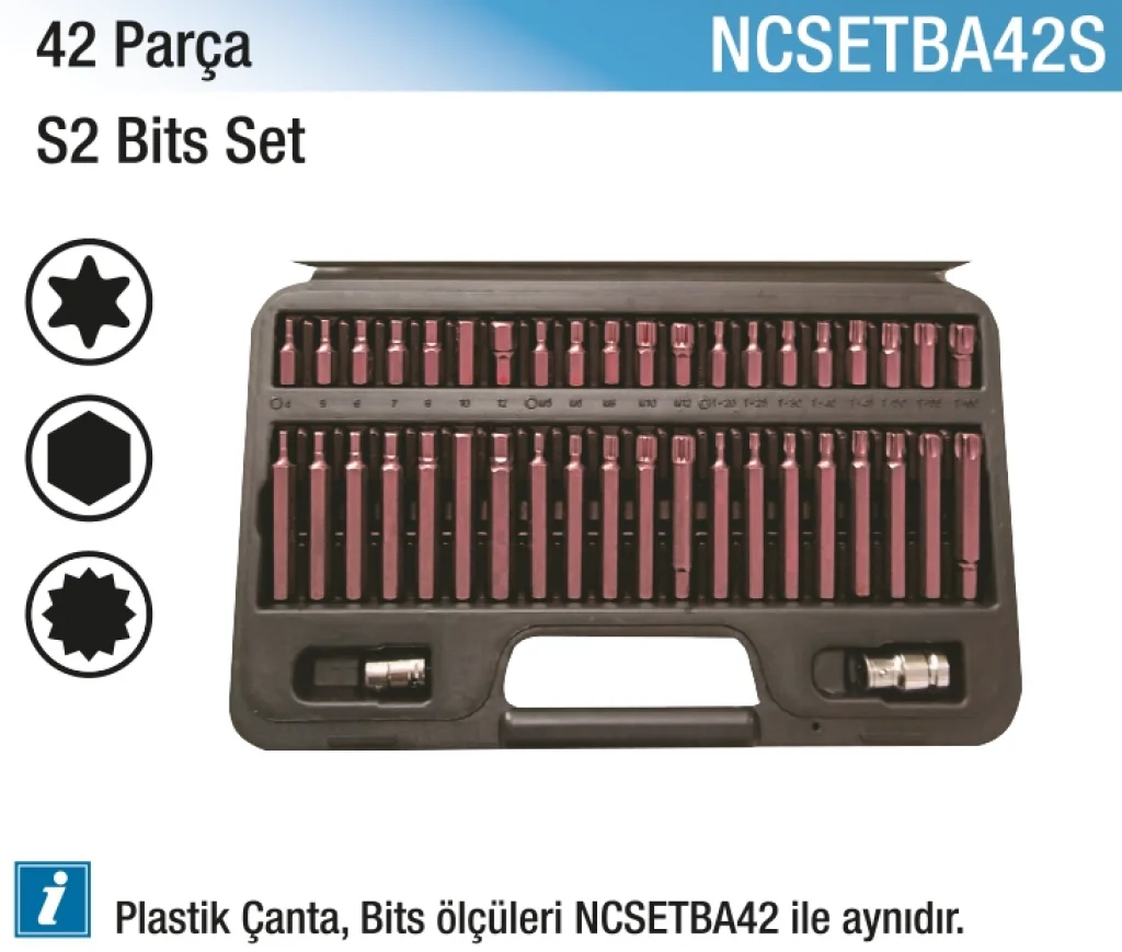 Hepsicinde bulabileceğiniz yüksek kaliteli 42 Parça S2 Bits Set, her türlü vida sökme ve takma işleminde size yardımcı olacak. Dayanıklı malzemeden üretilmiş bu set, işlevselliği ile de dikkat çekiyor. Uzun ömürlü ve güvenilir bir ürün arıyorsanız, 42 Parça S2 Bits Set tam size göre!