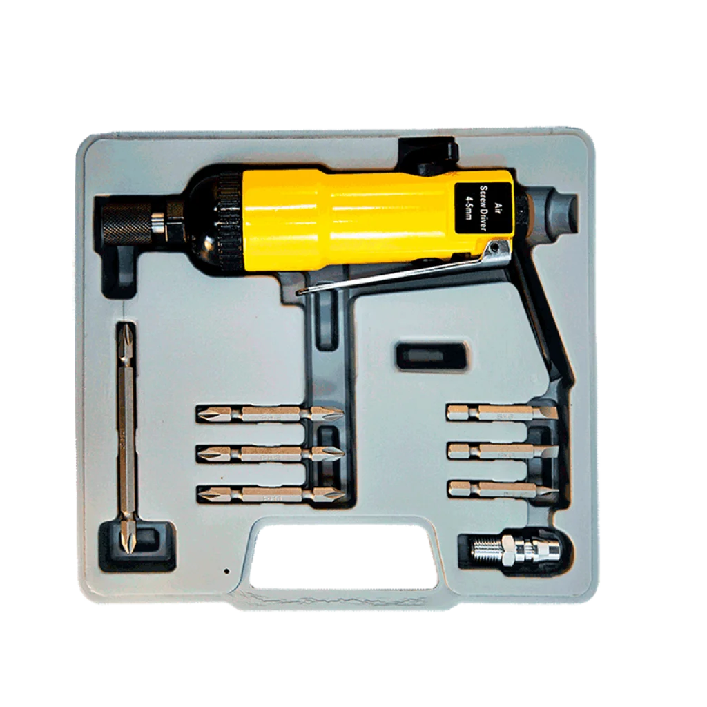 5 mm çapında ve 8000 RPM hızında çalışan düz tip havalı tornavida seti, endüstriyel ve atölye uygulamalarında yüksek performans sunar. Hızlı vidalama işlemleri için optimize edilmiştir.