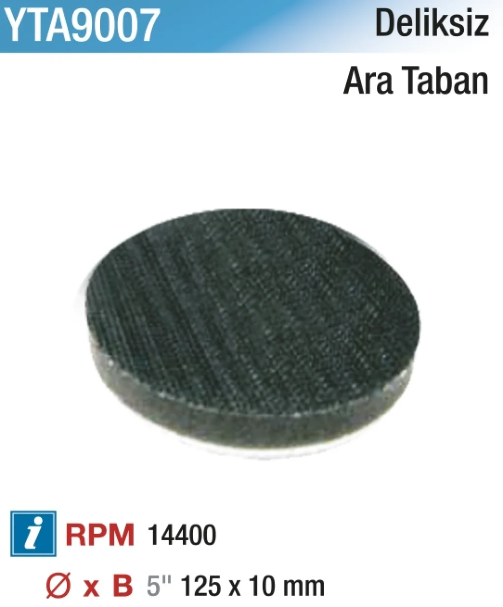 5.0" 125x10 mm Deliksiz Ara Taban, zımpara makinelerinizin daha verimli çalışması ve uzun ömürlü olmasını sağlayan yüksek kaliteli bir aksesuardır. Deliksiz tasarımı sayesinde, zımpara makinelerinin aşınmasını engeller, yüzeydeki pürüzleri düzleştirir ve fazla ısınmayı önler. 125x10 mm ölçülerindeki bu taban, özellikle geniş yüzeylerde hızlı ve verimli bir şekilde zımparalama yapılmasına olanak tanır.
