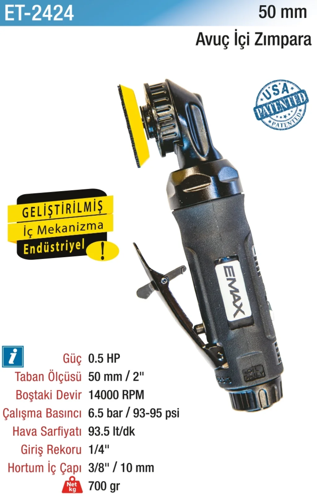 50mm.14000RPM 0.5HP Havalı Avuç İçi Zımpara