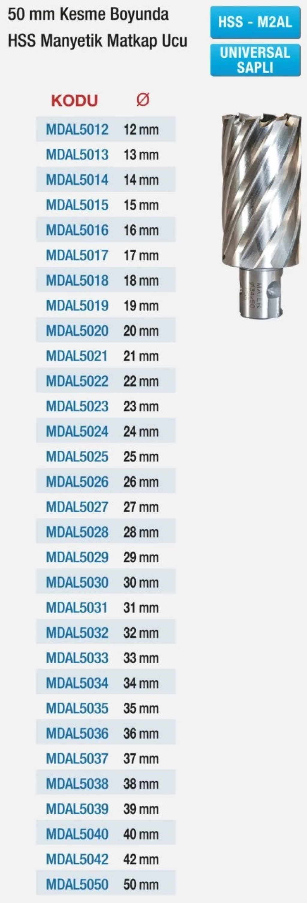 Hepsicinde 50 MM kesme boyunda HSS universal saplı manyetik matkap uçları, yüksek kaliteli malzemeden üretilmiştir ve uzun ömürlü kullanım sağlar. Dayanıklı yapısı sayesinde hızlı ve etkili kesme işlemleri için ideal bir seçenektir. Profesyonel veya amatör kullanım için uygun olan bu matkap uçları, çeşitli malzemelerde hassas delikler açmak için mükemmel bir seçenektir.