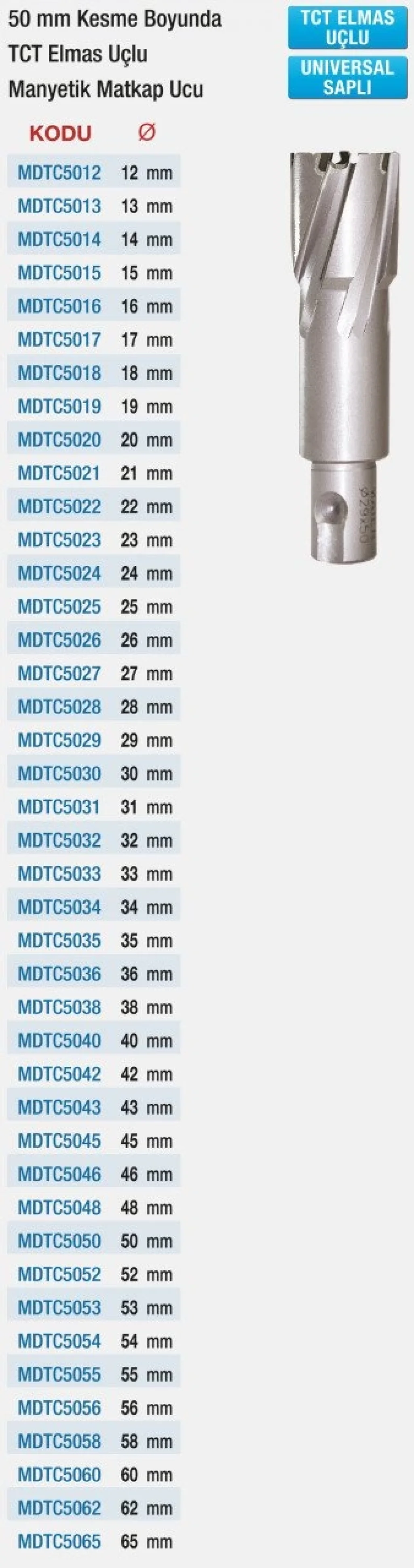 Profesyonel Matkap Uçları Seti, işlerinizi hızlı ve kolay bir şekilde yapmanıza yardımcı olacak yüksek kaliteli ve dayanıklı matkap uçları içerir. 50 MM KESME BOYUNDA T.C.T. ELMAS UÇLU UNİVERSAL SAPLI MANYETİK MATKAP UÇLARI ile her türlü malzemeyi kolayca delerek işlerinizi hızlandırabilirsiniz.