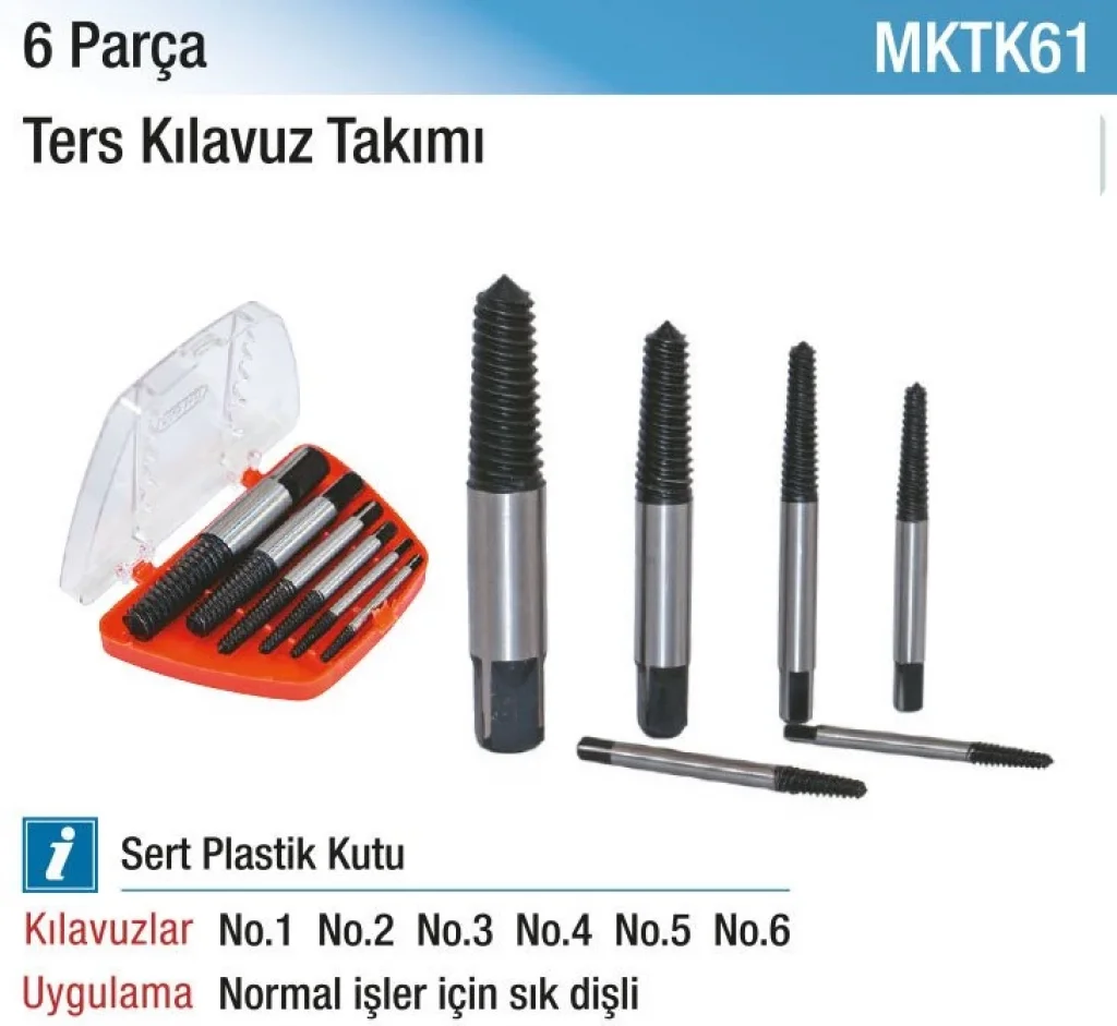 Hepsicinde 6 PARÇA TERS KILAVUZ TAKIMI (3 Adet), profesyonel kullanım için tasarlanmıştır. Dayanıklı malzemelerden üretilmiş olan bu kılavuz takımı, işinizde size yardımcı olacak en önemli ekipmanlardan biridir. Profesyonel sonuçlar elde etmek için tercih edebileceğiniz bu takım, işlevsel yapısıyla da dikkat çekmektedir. Uzun ömürlü ve kaliteli bir ürün arıyorsanız, bu kılavuz takımı tam size göre!