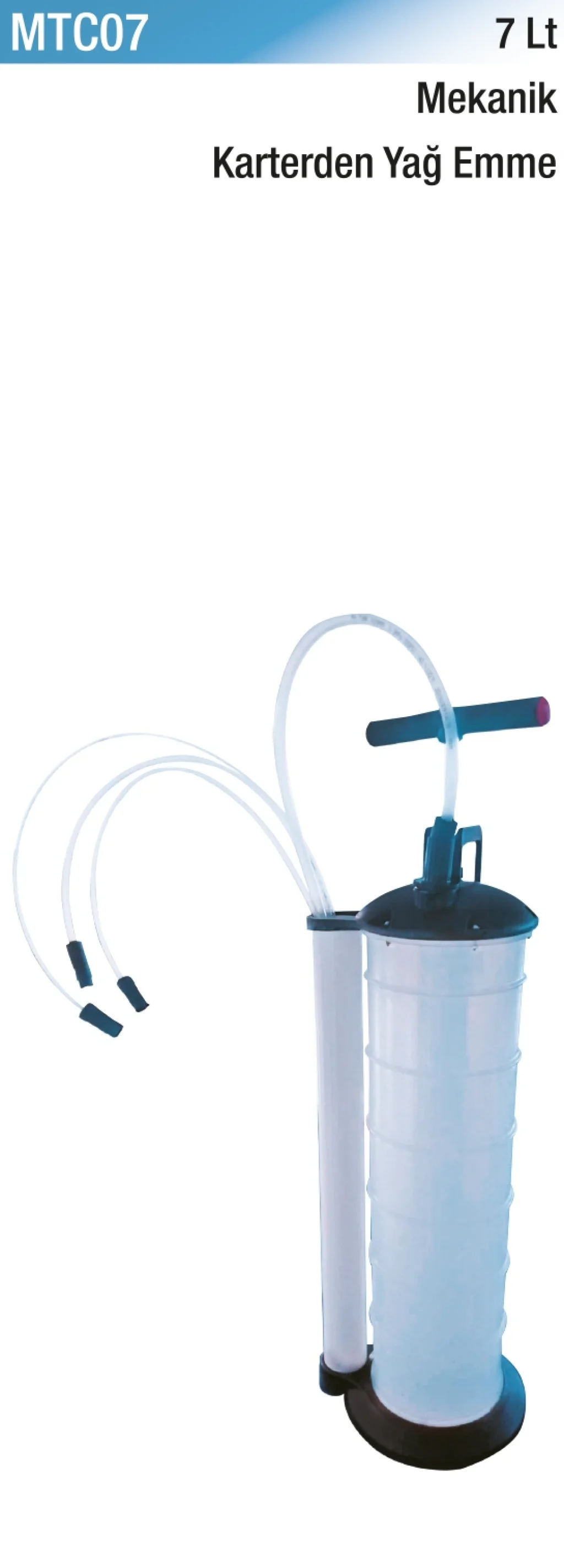 7 Lt. Karterden Yağ Emme Cihazı, otomobil, motosiklet veya hafif ticari araçlardaki eski motor yağını temiz ve güvenli şekilde tahliye etmek için tasarlanmış profesyonel bir settir. 7 litrelik haznesi, tek seferde yeterli miktarda yağ toplayarak işinizi hızlandırır ve atölye operasyonlarında kesintisiz performans sağlar. Dayanıklı polipropilen hazne, solvent ve yağlara karşı korozyon direnci sunarken, taşınabilir tekerlekli altlık kolay manevra imkanı verir. Uzun ve esnek emme hortumu, dar alanlardaki kartere rahat erişim imkanı tanır; ayrıca emme işlemi, vakum pompası veya el pompası ile kontrol edilebilir. Temiz çalışma ortamı sağlayarak dökülme riskini ortadan kaldırır. Profesyonel tamir atölyeleri, mobil servisler ve kendin yap (DIY) meraklıları için ideal bir çözümdür. Motor ömrünü uzatmak ve bakım maliyetlerini düşürmek isteyen herkesin tercih edeceği pratik ve ekonomik bir cihazdır.