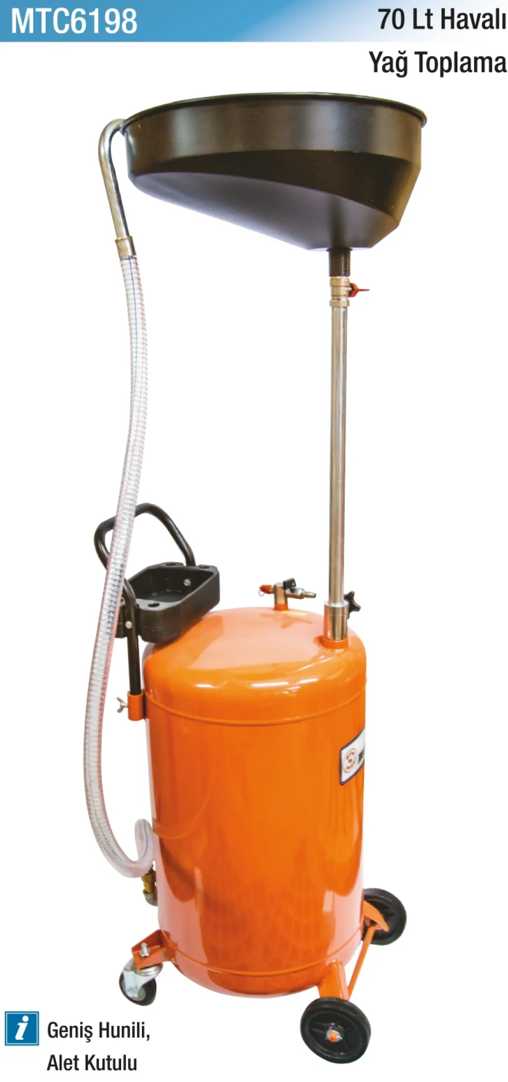 Hepsicinde 70 Lt. Havalı Yağ Toplama, endüstriyel kullanım için tasarlanmış yüksek kaliteli ve dayanıklı bir yağ toplama ünitesidir. Bu işlevsel ekipman, yağ değişimlerini hızlı ve kolay bir şekilde gerçekleştirmenize yardımcı olur.
