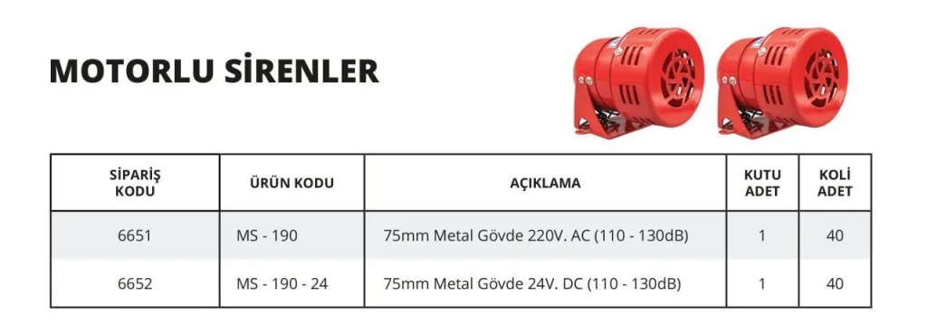 75mm çapında metal gövdeli motorlu siren, endüstriyel ortamlarda yüksek sesli uyarı amacıyla kullanılmak üzere tasarlanmıştır. Dayanıklı alüminyum alaşımlı dış kasası darbeye ve zorlu çalışma koşullarına karşı uzun ömürlüdür.