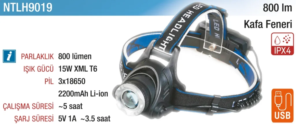 800 lm Kafa Feneri (Pilsiz)