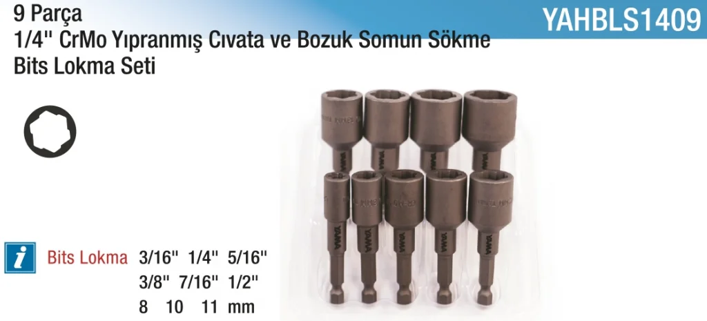 Hepsicinde 1/4" 9Prç.Bozuk Somun Lokma Seti, dayanıklı malzemeden üretilmiş ve işlevselliğiyle ön plana çıkan bir üründür. Tamir işlerinizde kullanabileceğiniz bu set, uzun ömürlü kullanım sağlar ve çeşitli somun boyutlarıyla uyumludur. Hemen satın alarak kaliteli bir ürüne sahip olun.