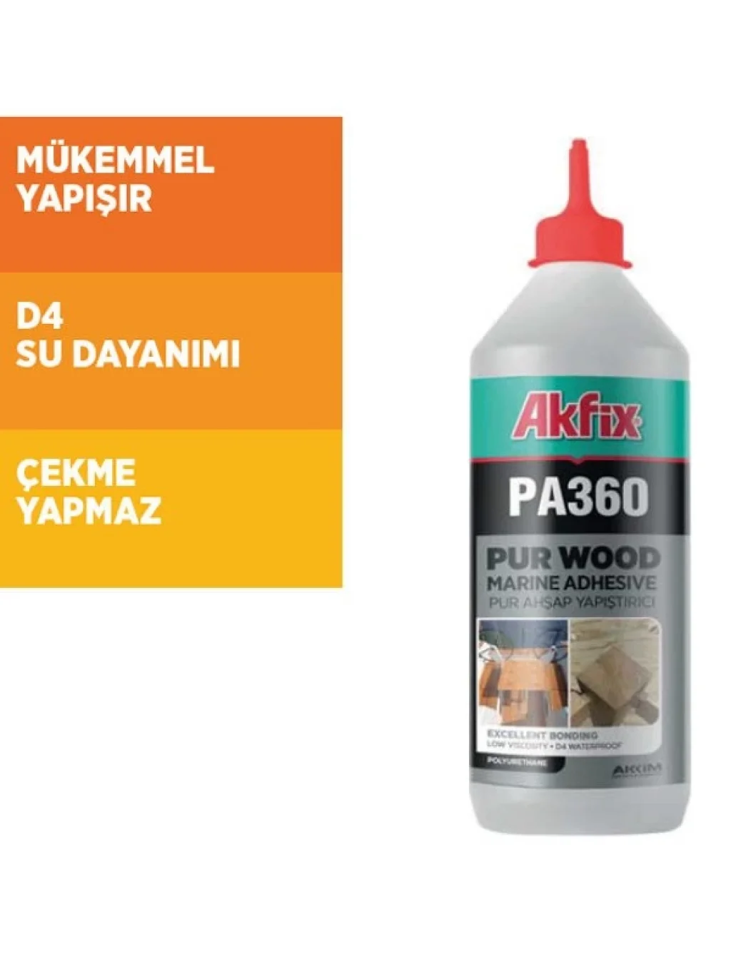 Akfix markasının dayanıklılığıyla bilinen ürünlerinden biri olan PA360, ahşap yüzeyler için geliştirilmiş bir poliüretan yapıştırıcıdır. Ak fix poliüretan tutkal, suya, sıcaklığa ve dış hava koşullarına dayanıklı yapısıyla özellikle dış mekan projelerinde mükemmel sonuçlar sağlar.