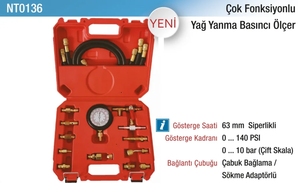 Yağ yanma basıncı ölçer, motorların aşırı basınç veya düşük basınç gibi sorunlardan dolayı zarar görmesini önler. Ayrıca, cihazın çok fonksiyonlu yapısı, birden fazla parametreyi aynı anda izleyerek sistemin genel performansını daha iyi değerlendirme imkanı sunar. Endüstriyel makineler ve motorlar için ideal bir test ve izleme aracıdır.