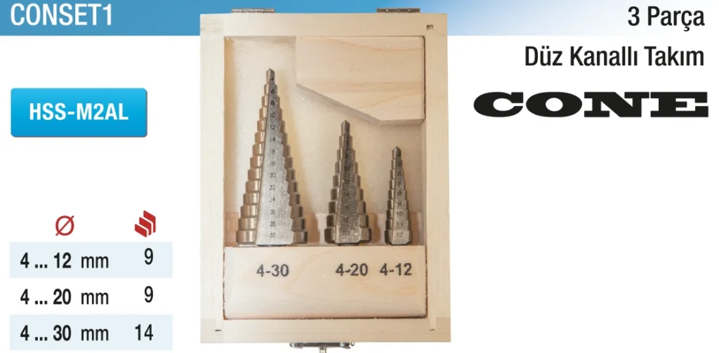 Hepsicinde Cone 3 Parça Kademeli Matkap Ucu Takımı, profesyonel kullanım için özel olarak tasarlanmış yüksek kaliteli matkap ucu setidir. Bu set, dayanıklı malzemelerden üretilmiş olup işlerinizi hızlı ve kolay bir şekilde tamamlamanıza yardımcı olacak şekilde tasarlanmıştır. Matkap ucu takımı, çeşitli malzemelerde delik açmak için idealdir ve evde veya işyerinde kullanım için mükemeldir.