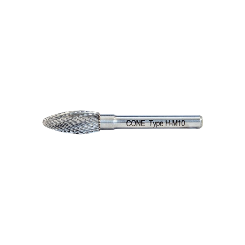 CONE H Tipi Kavisli Çam Karbür Kalıpçı Frezesi, kavisli ve çukur yüzeylerin yüksek hassasiyetle işlenmesini sağlayan özel formda bir freze ucudur. Çam şeklindeki kıvrımlı yapısı sayesinde zor geometrilere sahip bölgelerde dahi rahat çalışma imkanı sunar.