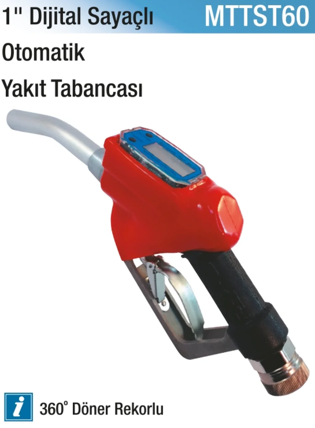 Dijital sayaçlı otomatik yakıt tabancası, yakıt dolum işlemlerinizde kontrolü elinize almanızı sağlar. Hem zamandan tasarruf edin hem de yakıtınızı daha verimli kullanın.