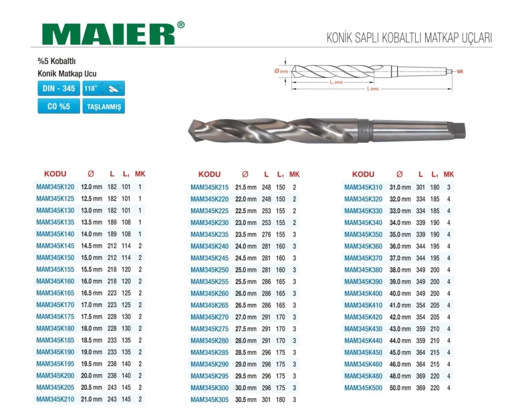 DIN 345 %5 Kobaltlı Konik Saplı Matkap Uçları, yüksek kaliteli malzemeden üretilmiş olup uzun ömürlü ve dayanıklıdır. İşlevselliği sayesinde mükemmel sonuçlar elde etmenize yardımcı olur. Kaliteli işçiliği ile öne çıkan bu matkap uçları, her türlü matkap işinizde size yardımcı olacaktır.