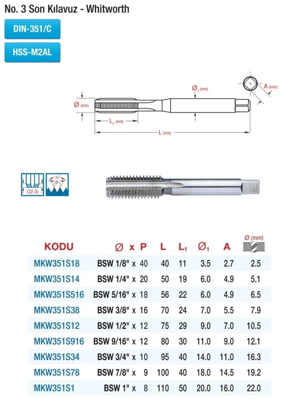 DIN 351 NO.3 SON KILAVUZ - WHİTWORTH - HSS EL KILAVUZLARI, profesyonel işlerinizde size yardımcı olacak yüksek kaliteli bir el kılavuzudur. HSS malzemeden üretilmiş olan bu kılavuz, dayanıklı ve uzun ömürlüdür. İşlerinizi kolaylaştıracak şekilde tasarlanmış olan bu el kılavuzu, en uygun fiyatlarla sizleri bekliyor. Kaliteli ve işlevsel ekipmanlar arıyorsanız, bu ürün tam size göre!