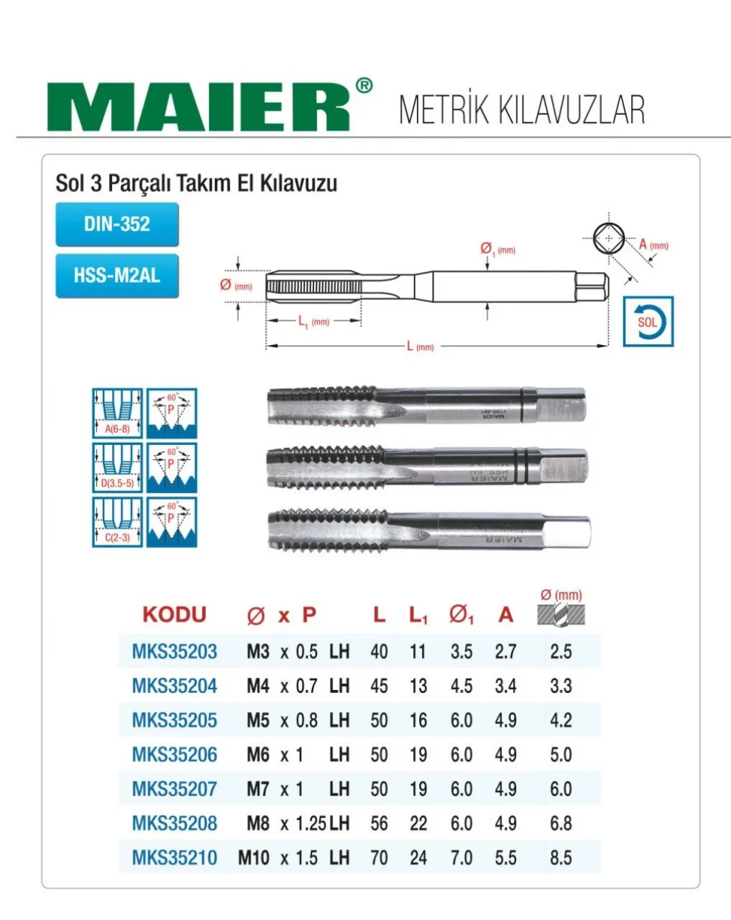 DIN 352 SOL 3 parçalı takım, yüksek kaliteli HSS malzemeden üretilmiş olup dayanıklı ve işlevsel bir üründür. Profesyonel kullanım için idealdir. Her türlü metrik işlem için mükemmel sonuçlar sağlar.