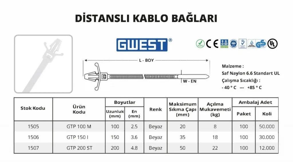 Distanslı Kablo Bağları, özellikle profesyonel kullanım için tasarlanmış olup, kolayca kullanılabilir ve kablo bağlantılarınızın düzenini uzun süre korur. Yüksek dayanıklılığı, yüksek güvenliği ve kolay kullanımı ile en iyi kablo yönetimi çözümüdür.