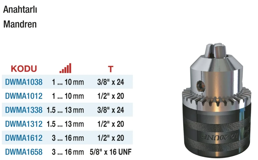 D&W Anahtarlı Mandrenler, CNC makineleri, torna tezgahları ve diğer endüstriyel işleme makinelerinde güvenli ve yüksek performanslı takım tutma sağlar. Anahtarlı mekanizma, takımın sabit bir şekilde yerleştirilmesini ve güçlü bir şekilde tutturulmasını garanti eder. Bu mandrenler, özellikle yüksek tork gerektiren uygulamalarda üstün güvenlik ve hassasiyet sunar.