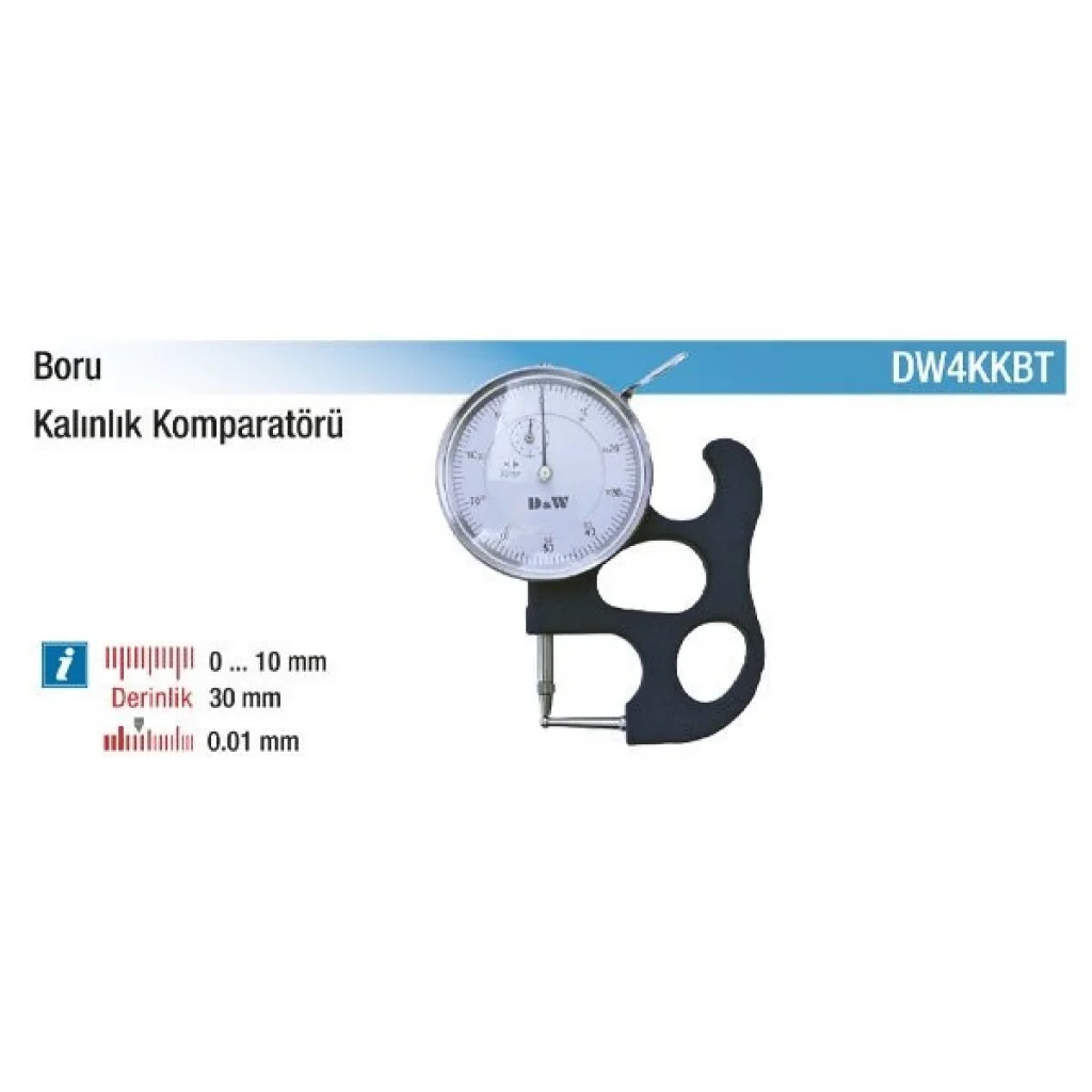 D&W Boru Kalınlık Komparatörü, boru yüzeyleri gibi kavisli yapıların duvar kalınlığını ölçmek üzere özel tasarlanmıştır. Özel kavisli çene yapısı ve sağlam yaylı mekanizması sayesinde borunun deformasyonunu önler, doğru ölçüm sağlar. Hem metal hem plastik borular üzerinde kullanılabilir. Otomotiv, yapı ve sıhhi tesisat sektörlerinde yaygın olarak tercih edilir. Dış çevreden merkeze doğru hassas tutuş sunan bu cihaz, pratik ve güvenilir bir çözümdür.
