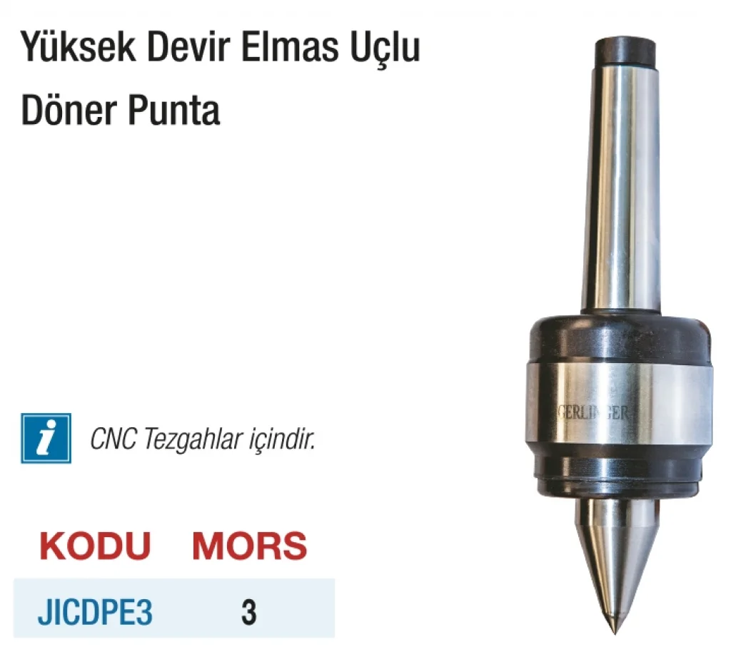 D&W CNC İçin Yüksek Devir Döner Elmas Uçlu Puntalar, CNC tezgahlarında yüksek hız ve hassasiyetle çalışmak isteyen profesyoneller için geliştirilmiş üstün performanslı bir punta modelidir. Elmas uç yapısı sayesinde aşınmaya karşı maksimum direnç gösterirken, döner mekanizması ile iş parçası ile birlikte dönerek sürtünmeyi ve ısınmayı minimuma indirir.