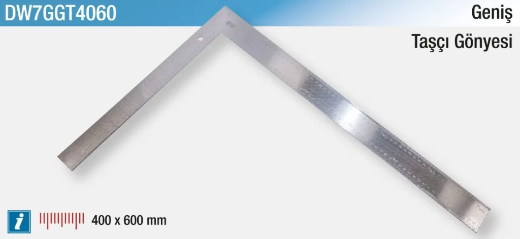 D&W Geniş Taşçı Gönyesi 400 x 600 mm, büyük ölçüm gerektiren taş ve inşaat işlerinde kullanılmak üzere tasarlanmıştır. Sağlam ve dayanıklı alüminyum konstrüksiyonu, ağır şartlarda bile ölçüm hassasiyetini korur. Geniş yüzeyi ve net işaretleri, doğru açı ve ölçüm yapmayı kolaylaştırır. Taş, beton ve mermer işlerinde profesyonel kullanıma uygundur. Hafif yapısı sayesinde taşıması kolaydır ve sahada pratik çözümler sunar.