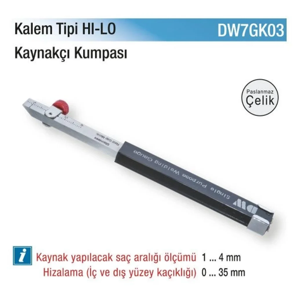 D&W Kalem Tipi Hi-Lo Kaynakçı Kumpası, kaynakçılar için özel olarak geliştirilmiş, cepte taşınabilen pratik bir ölçüm aracıdır. Boru kaynaklarında merkez kaçıklığı, boşluk ve hizalama kontrolleri gibi temel ölçümleri hızlı ve güvenli şekilde yapar. Kalem formundaki ince yapısı sayesinde kolay taşınır, iş sırasında cebinizde rahatça bulundurabilirsiniz. Ergonomik ve dayanıklı yapısı ile zorlu çalışma ortamlarına karşı dayanıklıdır. Tüm boru kaynakçıları, denetçiler ve montaj ekipleri için olmazsa olmaz bir yardımcıdır.