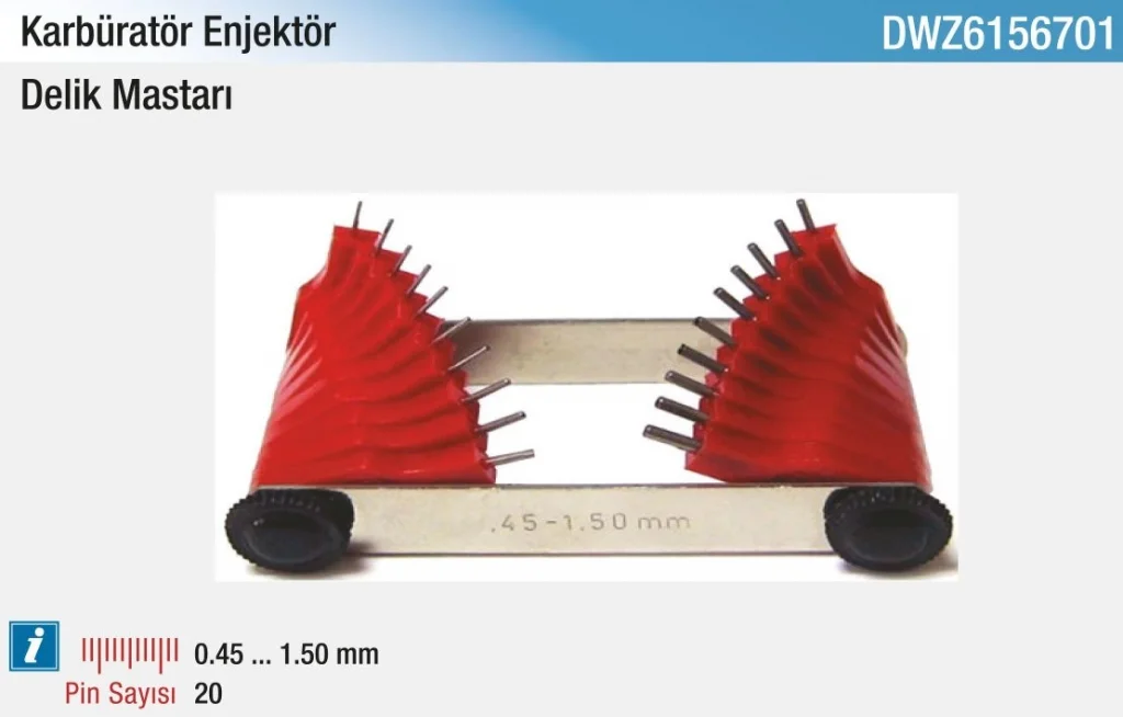 D&W Karbüratör Enjektör Delik Mastarı, motor ve karbüratör bakımında enjektör delik çaplarının hassas ölçümünü sağlar. Paslanmaz ve dayanıklı malzemeden üretilmiştir. Hassas işaretlemeleri ile doğru ve hızlı ölçüm imkanı sunar. Otomotiv tamiri ve endüstriyel bakım işlerinde önemli bir yardımcıdır. Kullanımı kolay, taşınabilir ve uzun ömürlü yapısı ile profesyonellerin tercihi olmuştur.