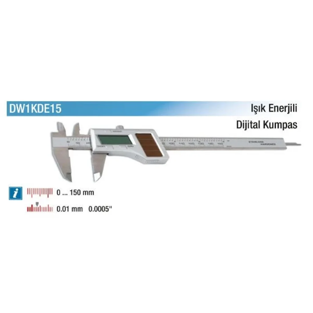 D&W LCD Güneş Enerjili Dijital Kumpas, teknolojiyi ve çevre dostu tasarımı bir araya getirerek enerji verimliliğini ön planda tutar. Dahili güneş paneli sayesinde pil değişimine gerek kalmadan uzun süre kullanılabilir. Geniş LCD ekranı ile kolay okuma sağlar ve mm/inç geçiş, sıfırlama, veri tutma gibi fonksiyonlarıyla kullanıcı dostudur. Yüksek hassasiyetli ölçüm kapasitesi ile üretim hatları, kalite kontrol, mühendislik ve teknik servislerde yoğun olarak kullanılır. Hem ergonomik hem de sürdürülebilir bir çözüm arayanlar için ideal bir tercihtir.