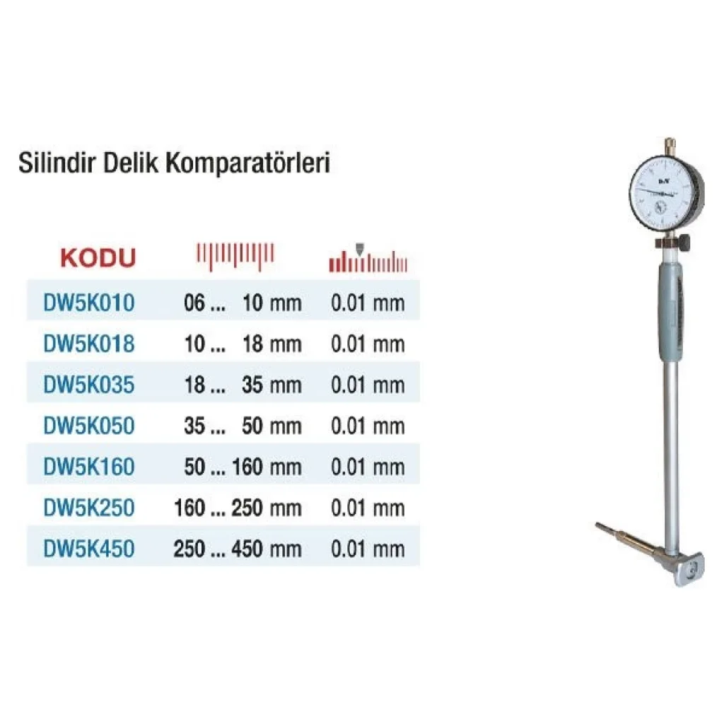D&W Silindirik Delik Komparatörleri, özellikle hassas iç çap ve ovalite kontrolü gerektiren parçalar üzerinde kullanılmak üzere geliştirilmiştir. Mikron seviyesinde doğruluk sağlayan bu cihazlar, silindirik parçaların üretim ve kalite kontrol süreçlerinde vazgeçilmezdir. Komparatör saatine bağlanarak okunabilir ölçüm sağlar. Endüstriyel zeminlerde ve hassas üretim hatlarında uzun ömürlü kullanım için ideal bir yapıya sahiptir. CNC, kalıp, havacılık ve otomotiv sektörlerinde sıkça tercih edilir.