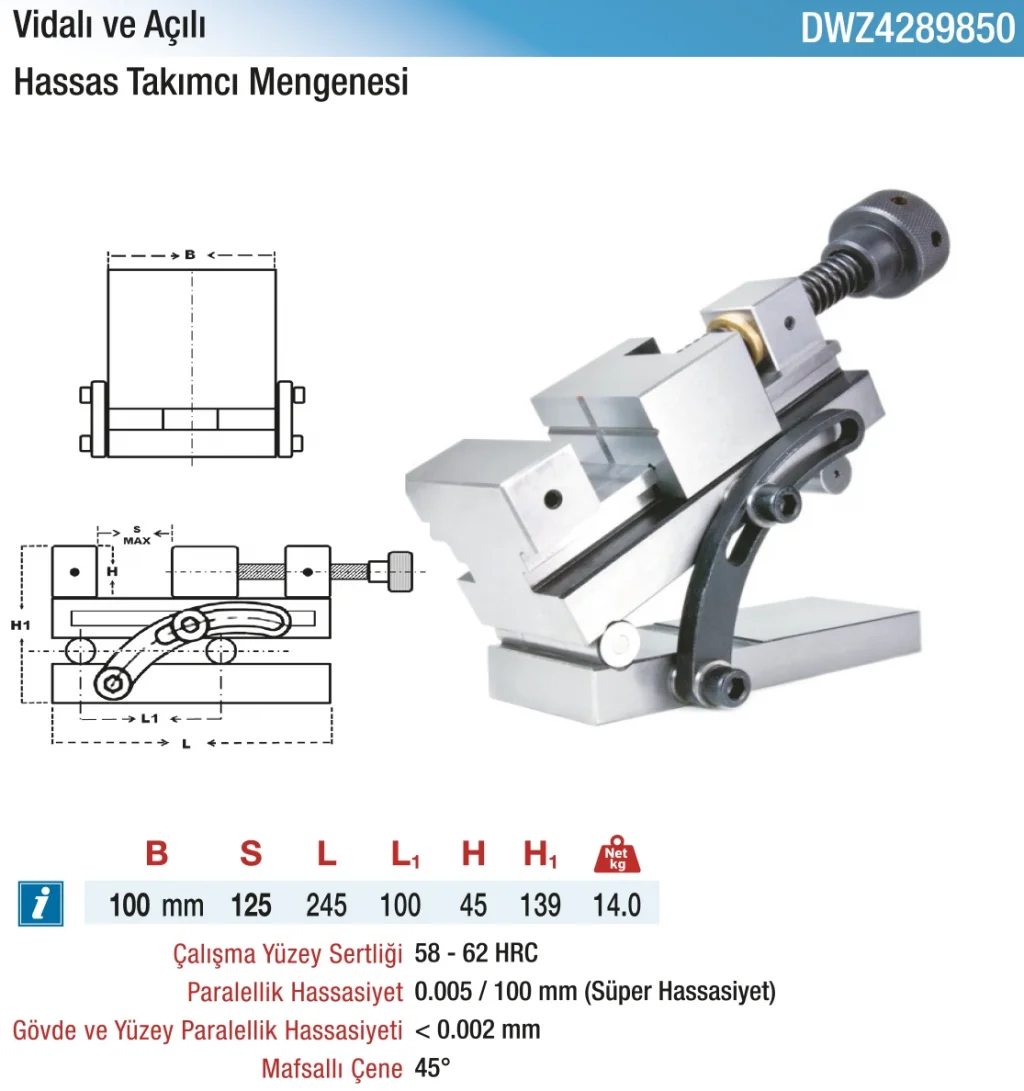 D&W Vidalı - Açılı - Hassas Takımcı Mengeneleri, işleme süreçlerinizi daha hassas, güvenli ve verimli hale getiren, dayanıklı ve pratik bir çözüm sunar.