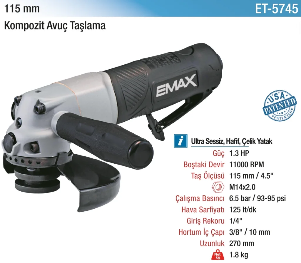 Havalı motor teknolojisi sayesinde uzun süreli kullanımda düşük ısınma, yüksek verimlilik ve düşük enerji tüketimi sağlanır. Kompakt yapısı ve düşük titreşim özellikleri, uzun süreli kullanımda el yorgunluğunu azaltır ve kesintisiz taşlama işlemleri gerçekleştirmenize olanak tanır.