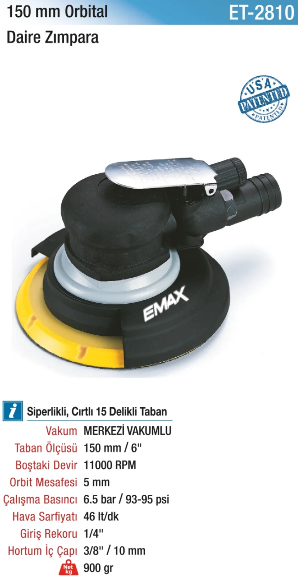 150mm.11000RPM Orbital D. Zımpara Merkezi Vakumlu