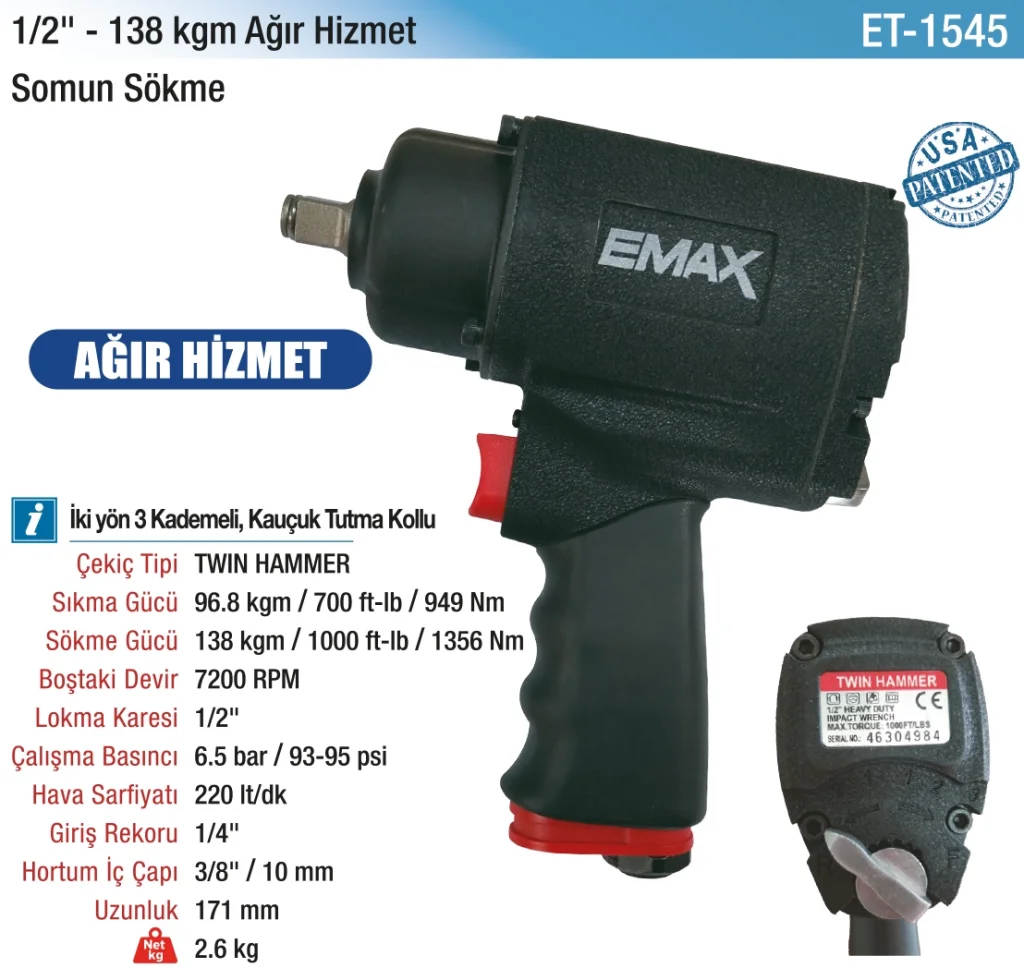 | Sıkma Gücü | 96.8 kgm / 700 ft-lb / 949 Nm | |