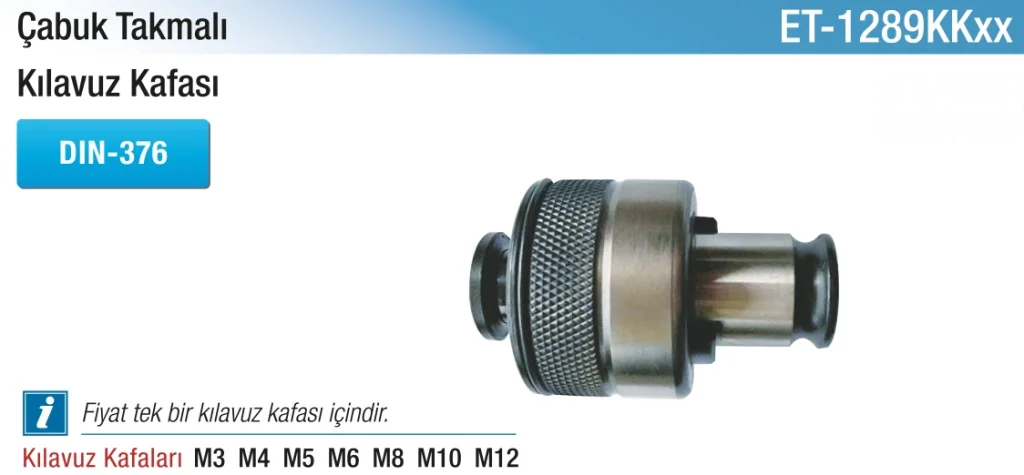 Emax Hızlı Değiştirmeli Kılavuz Adaptör Kafası, zaman kazandıran ve pratik kullanımı ile öne çıkan bir üründür. Hızlı kılavuz değiştirme ile iş gücü verimliliğini artırır ve daha hızlı üretim süreçlerine olanak tanır. Endüstriyel alanda maksimum güvenlik ve yüksek performanslı çalışma sağlar.