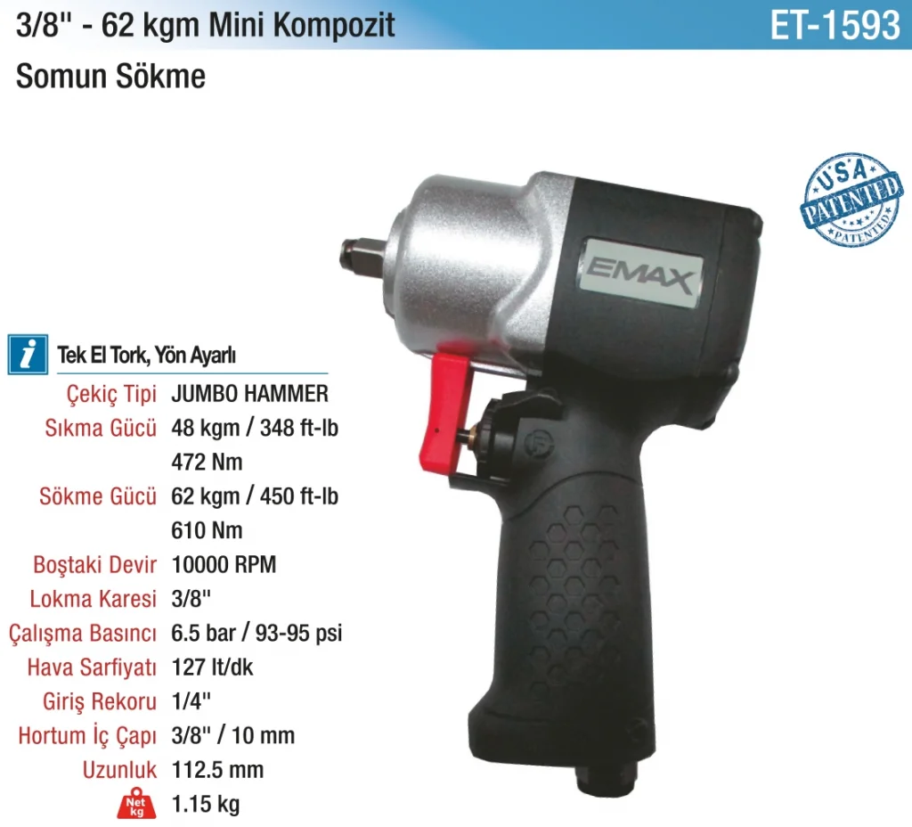 | Sıkma Gücü | 48 kgm / 348 ft-lb / 472 Nm | |